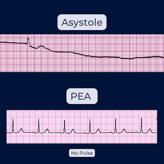 Gambaran EKG PEA dan Asistol | Sumber: The Resuscitation Coach