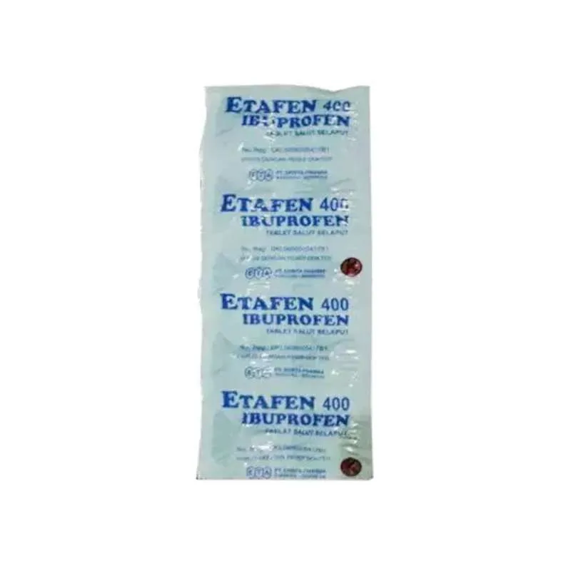 Etafen adalah obat yang mengandung ibuprofen 400 mg. Fungsinya sebagai pereda nyeri sekaligus penurun demam.
